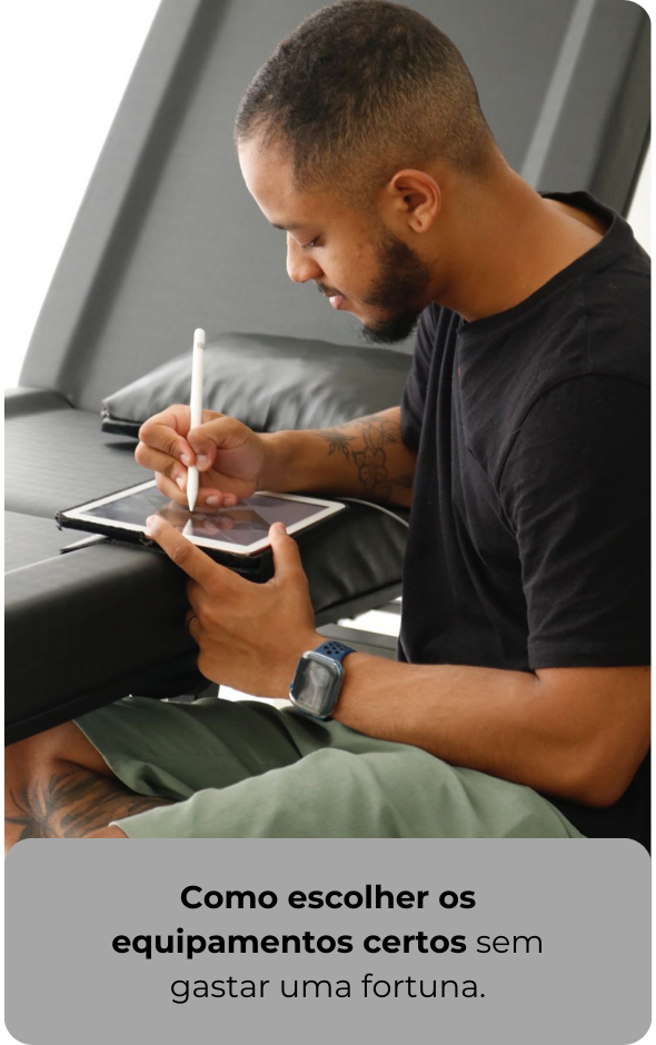 Pai dedicado de um casal, ele sabe o valor do tempo e da liberdade que a tatuagem trouxe para sua vida. Por isso, decidiu abrir sua “caixa preta” e compartilhar tudo o que aprendeu ao longo dos anos, desde as técnicas mais eficazes até os segredos para conquistar clientes e construir uma carreira de sucesso.